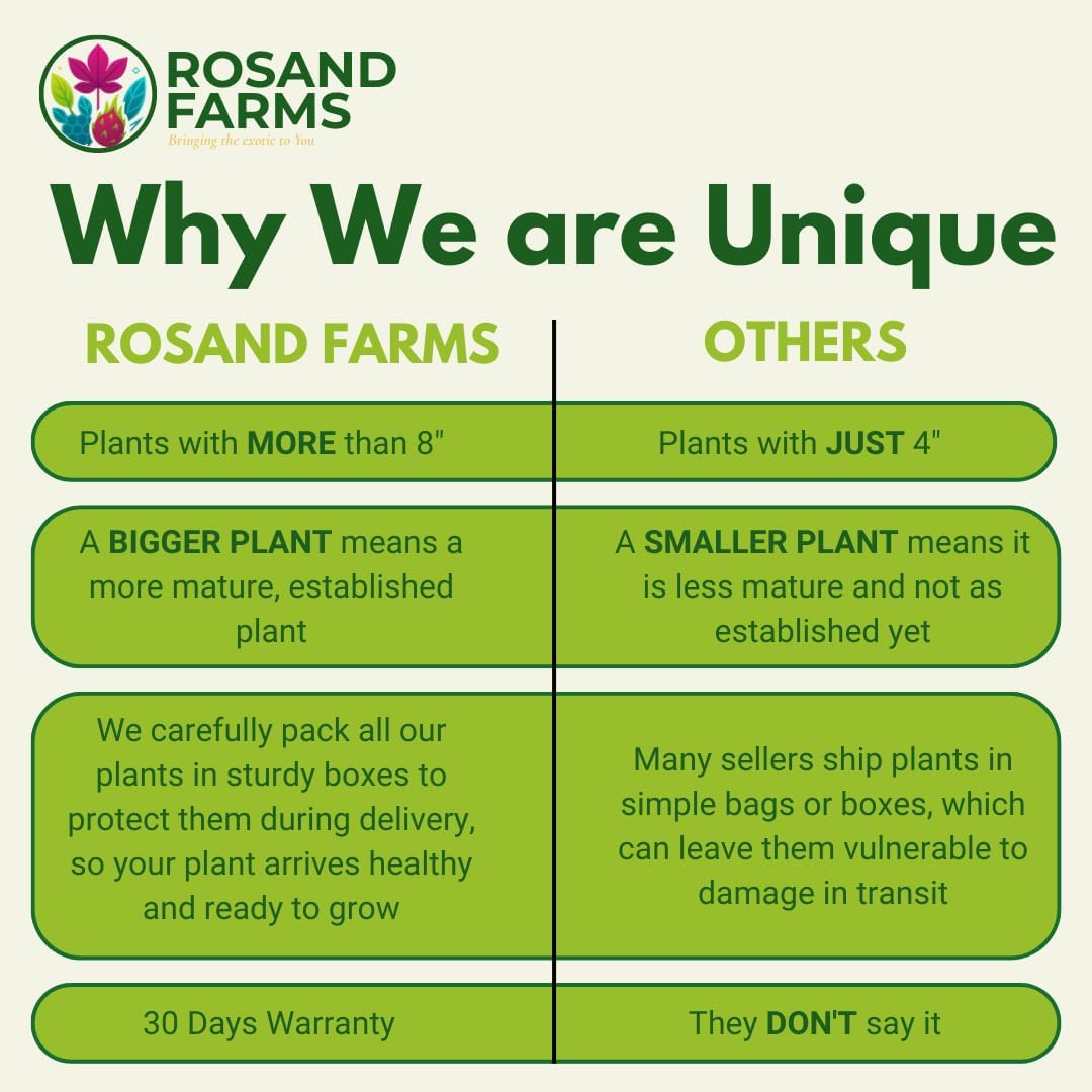 Start your own tropical garden with these live, rooted white dragon fruit (pitahaya) vine cuttings from Rosand Farms in South Florida. Each cutting is self-fertile, perfect for beginners and home gardeners who want sweet, white-fleshed dragon fruit on a patio, balcony, or backyard trellis. This plant can be grown indoors or outdoors. It will thrive outside in USDA Zones 10–11—very warm, frost-free climates where winter temperatures rarely drop near freezing—but it also adapts beautifully to warm, sunny indoor spaces in any zone. When planted outdoors in rich, well-drained soil with proper support, a mature plant can reach 15–20 feet in height.