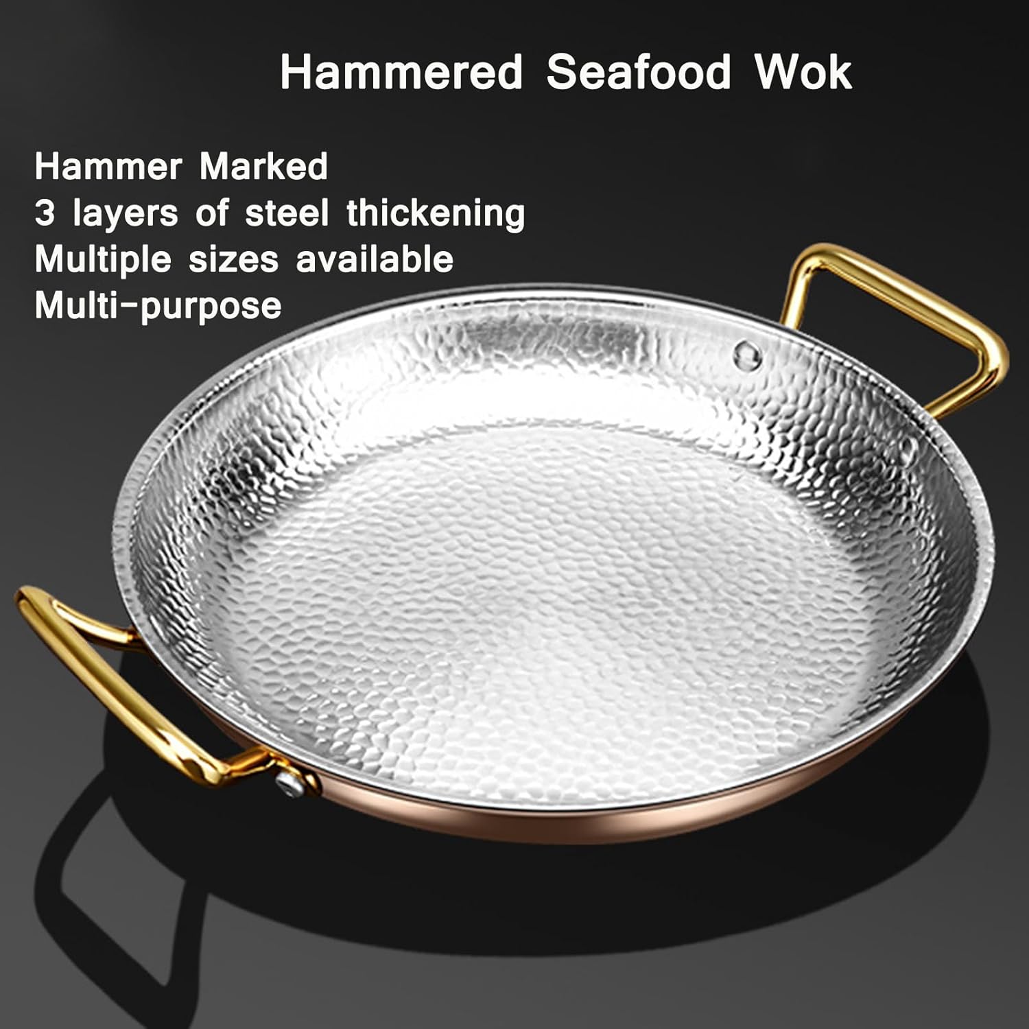 Our stainless steel paella pan is beautiful, and rust free; making it the perfect paella dish choice. Use this pan to cook on gas, an open fire, or even put it in the oven; the ultimate choice for your paella whether you like to cook up this delicacy indoors, or outdoors. And can be used as used as steak pan or pancake pan, omelet pan, crepe pan, pasta pan. Specifications: Name: Spain Paella Pan Material: 304 StainlessSteel Color: Silver/Rose Gold Size: 16-36cm 16cm: 16x3cm 18cm: 18x3.2cm 20cm: 20x3.5cm 22cm: 22x3.8cm 24cm: 24x 4cm 26cm: 26x 4.2cm 28cm: 28x4.5cm 30cm: 30x4.8cm 32cm: 32x5cm 36cm: 36x5.5cm Package List: 1 x Spanish Paella Pan