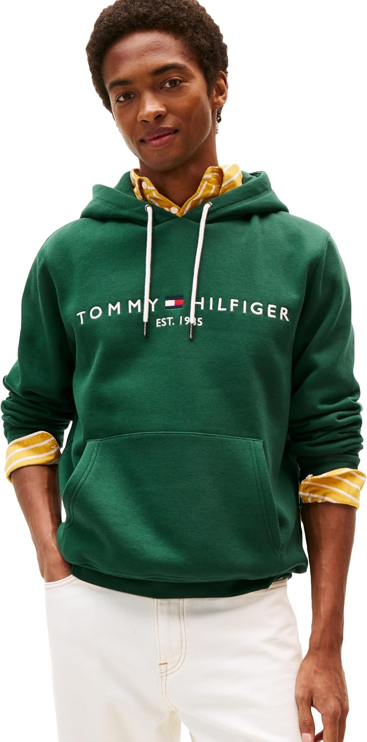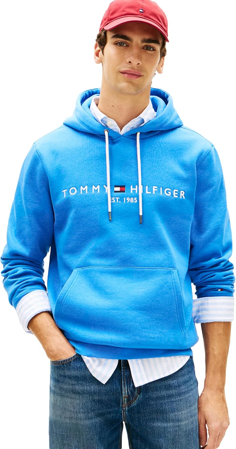 Introducing the essential hoodie from Tommy Hilfiger, featuring the iconic embroidered logo, crafted from a premium blend of cotton and yarns for unparalleled comfort. Complete with a convenient pocket, adjustable drawstring, and ribbed cuff & hem, this hoodie offers both style and functionality. The soft fleece construction ensures warmth without sacrificing breathability, making it perfect for everyday wear. With its regular fit design, this pullover strikes the ideal balance between comfort and style, flattering the silhouette while providing ample room for movement. Pair it effortlessly with your favorite Tommy Hilfiger shirts, tees, shorts, pants, jeans, jackets, or coats for a versatile and timeless look suitable for any occasion, whether casual or formal. Whether you're heading out for a day of leisure or hitting the gym, this sweatshirt is the ultimate go-to. Treat yourself or surprise a loved one with this versatile wardrobe staple, ideal for fathers, brothers, boyfriends, husbands, sons, or friends. Experience the unmatched quality and everyday style of Tommy Hilfiger with this must-have men's hoodie.